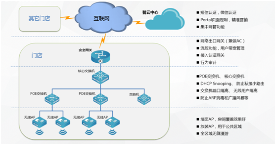 无线网络为宾客给予网络访问服务,要能够保证整个无线网络安全性,防止宾客遭受常见的网络攻击、网络欺骗、病毒、木马等,保障无线用户用网安全,让宾客可以放心的上网。